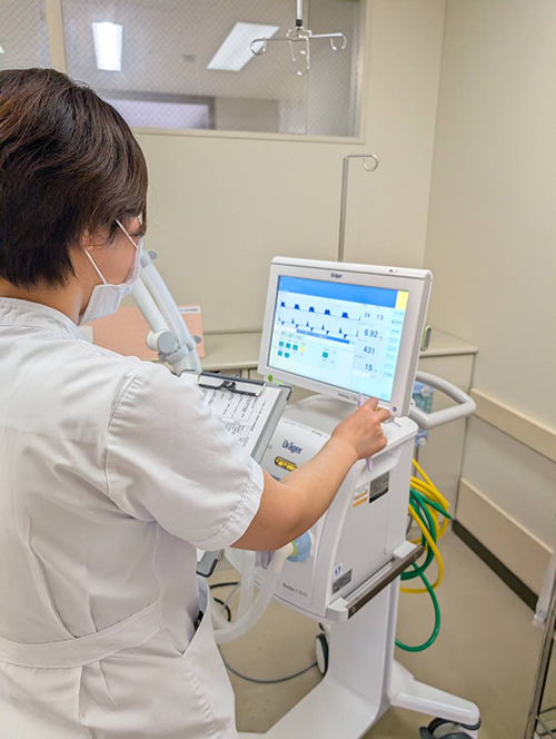 当院の使命である高度急性期医療を支えるべく、生命維持管理装置の専門家として院内各部署で日夜奮闘しております。