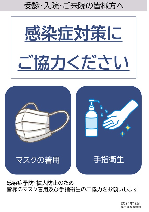 - 職員は、手指消毒剤を携帯し、二次感染防止に努めております。